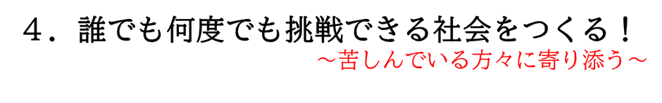 強い人がもっと強くなり、そして弱い人がもっと弱くなる。そんな社会にしてはいけません。強い人も弱い人も同じ社会で生きている。だからこそ、皆でもっと住みやすく、やさしい社会にしていかなければなりません。