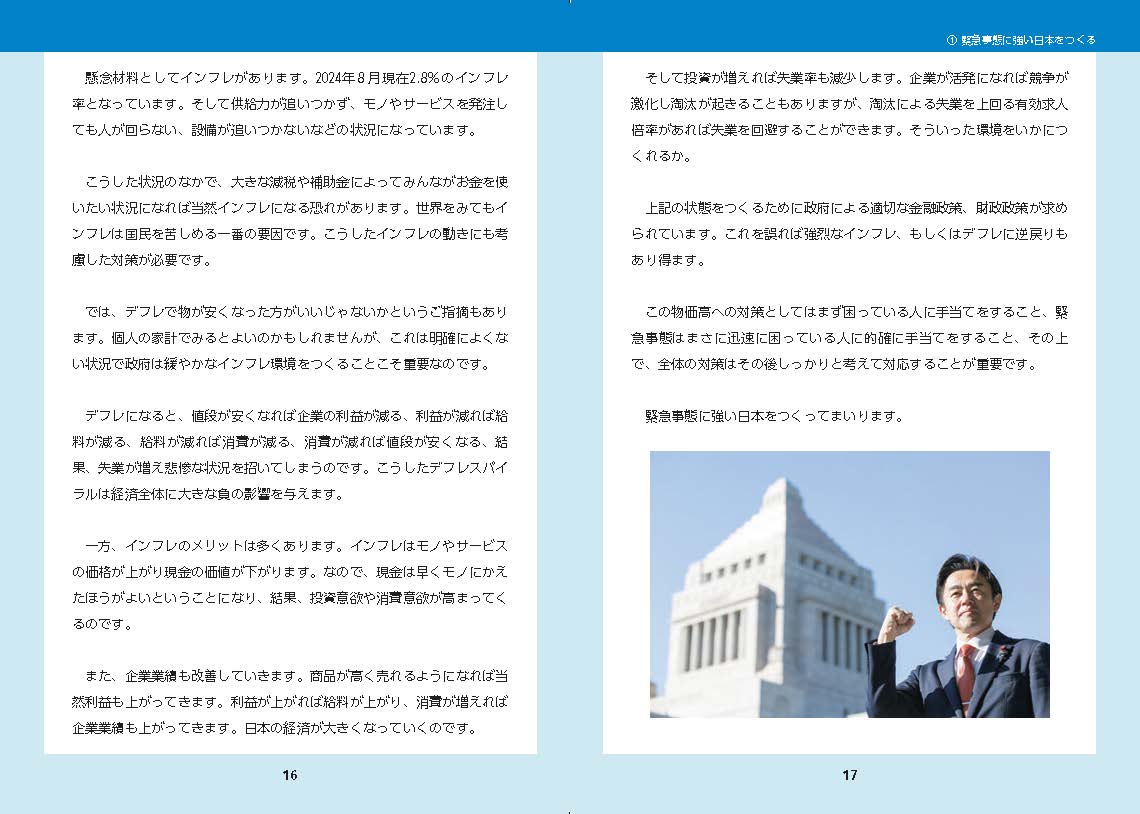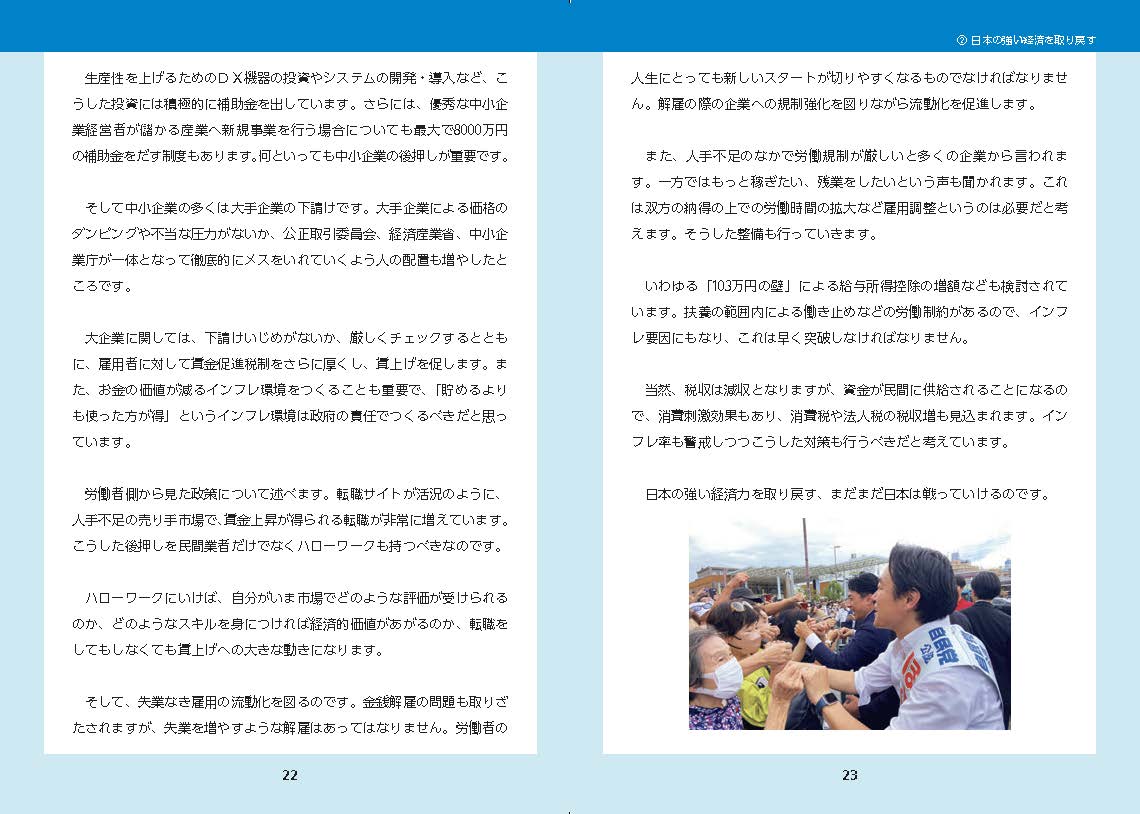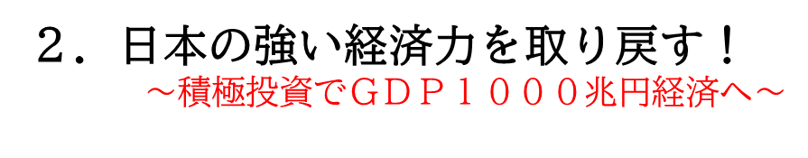 「責任ある積極財政で成長投資と危機管理投資を着実に推進。GDPを押し上げ国民所得の倍増を目指す。」
