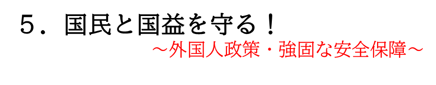 「日本の治安を守る排外主義ではないルールの厳格化、安全保障を重視したインテリジェンス機能の強化。」