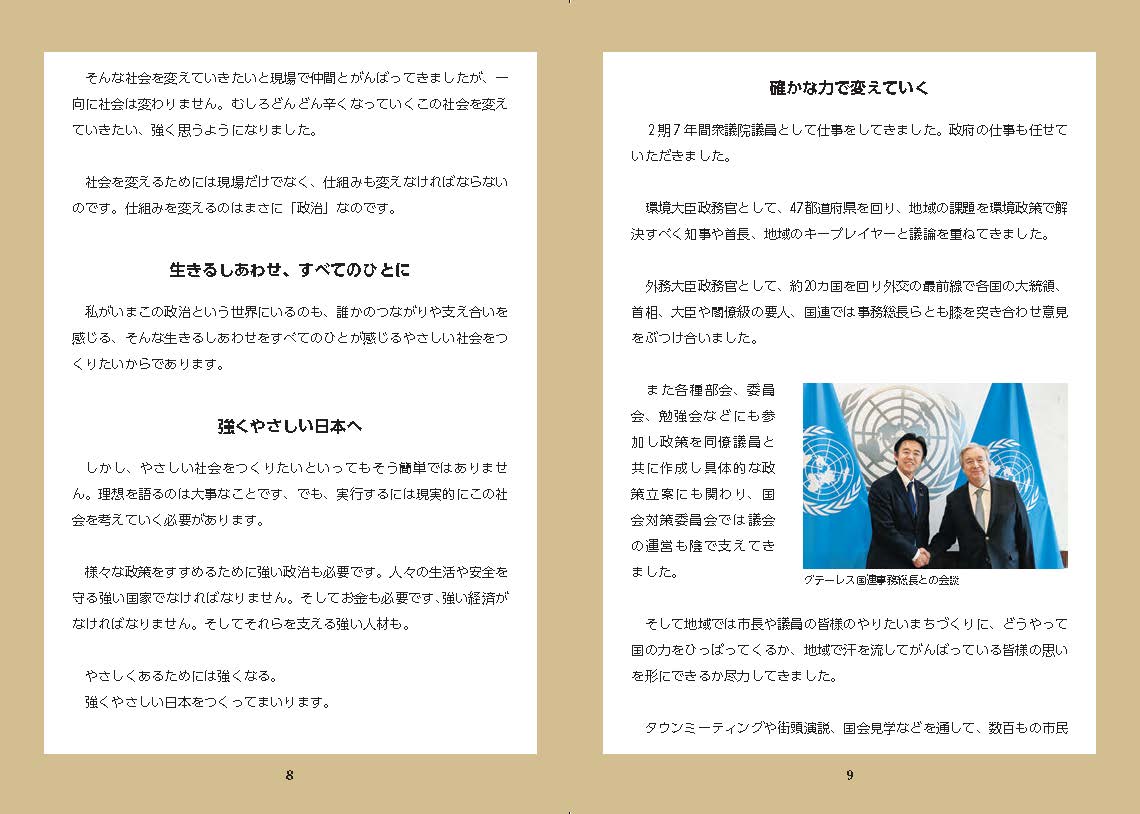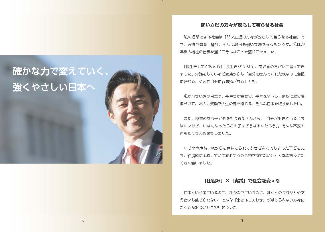 やさしくあるために強くあること、現実的な政治でそんな日本を目指してまいります。