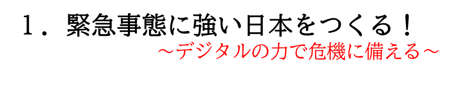 「 政治の最優先は国民の命を守ること。緊急時にデジタルの力で一人ひとりに本当に必要な支援と政策を届ける。」