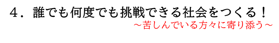 強い人がもっと強くなり、そして弱い人がもっと弱くなる。そんな社会にしてはいけません。強い人も弱い人も同じ社会で生きている。だからこそ、皆でもっと住みやすく、やさしい社会にしていかなければなりません。